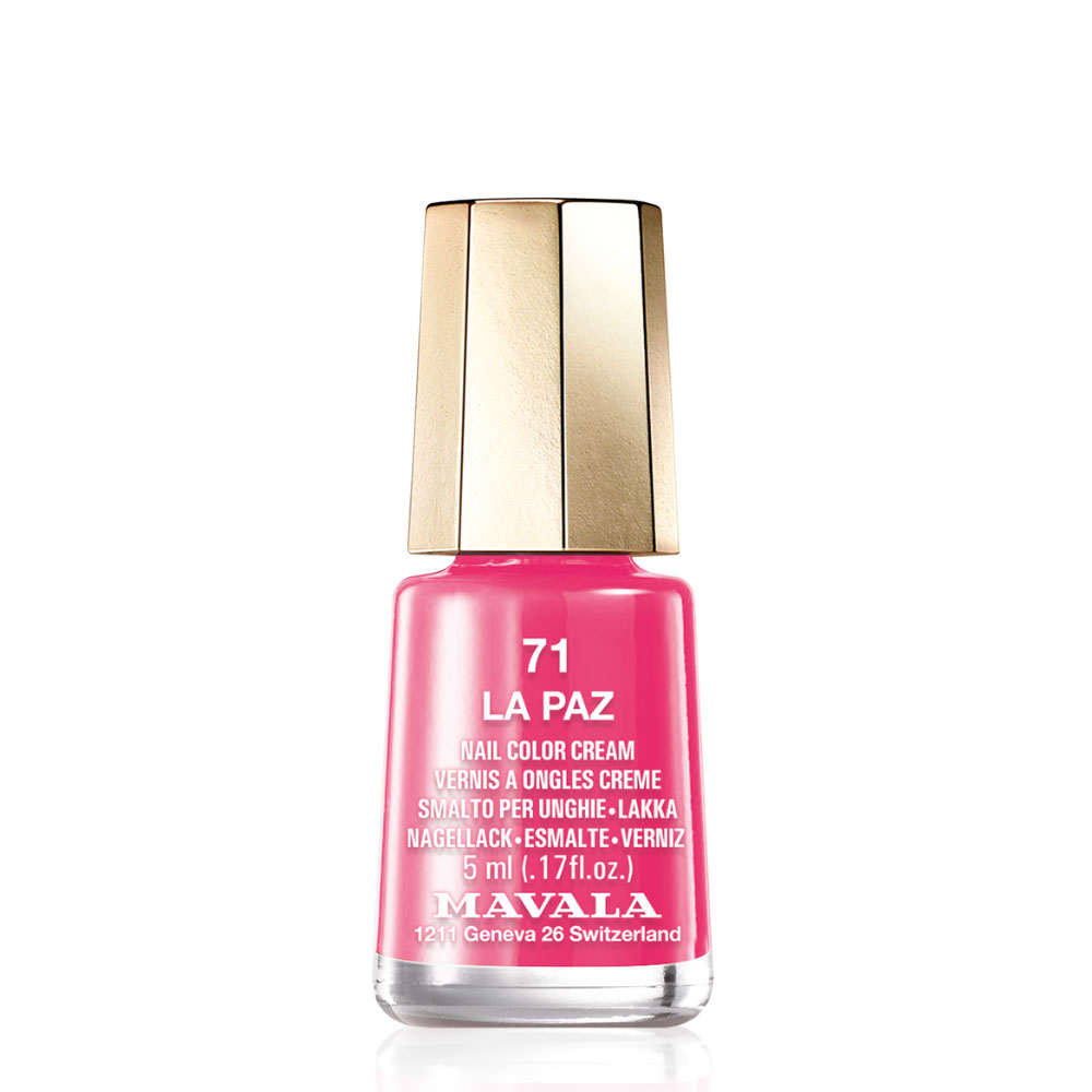 El esmalte de uñas La Paz 71 de Mavala es un producto que aporta color a las uñas y permite que respiren de forma natural. Forma parte de la línea Mavala Color y se presenta en frascos de 5 ml. Su fórmula incluye una resina plástica que se adhiere firmemente a la uña y un protector solar que ayuda a prevenir el deterioro del esmalte. Este producto está libre de parabenes, formaldehído y níquel añadido. Ofrece una cobertura natural, proporcionando un acabado elegante y sofisticado.